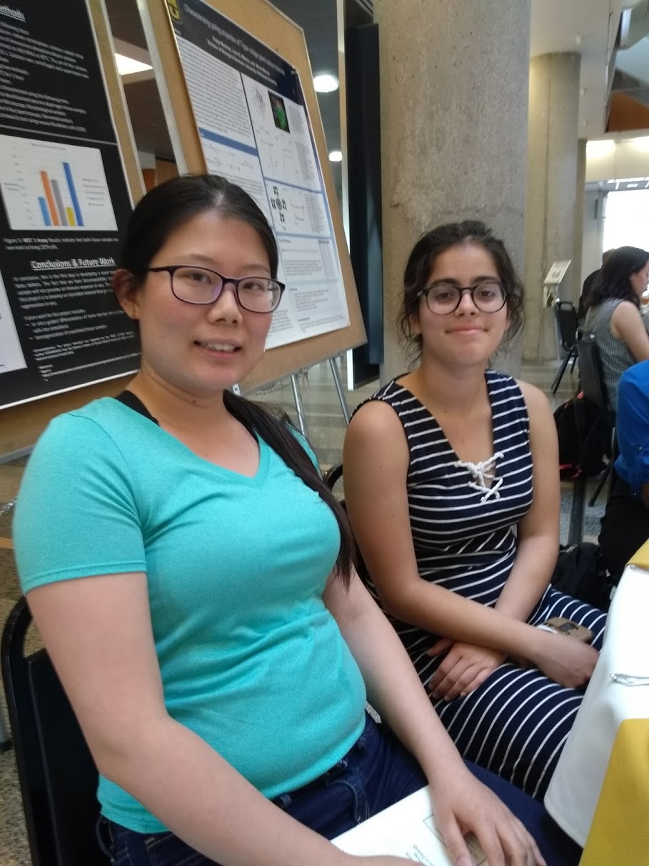 May 2, 2018: IMSD Express Reception in the atrium of the Bond Life Science Center. Kathy Yang (doctoral student & mentor) and IMSD-mentee Nicohl Corretjer. Rainer Glaser (adviser) takes the picture. |